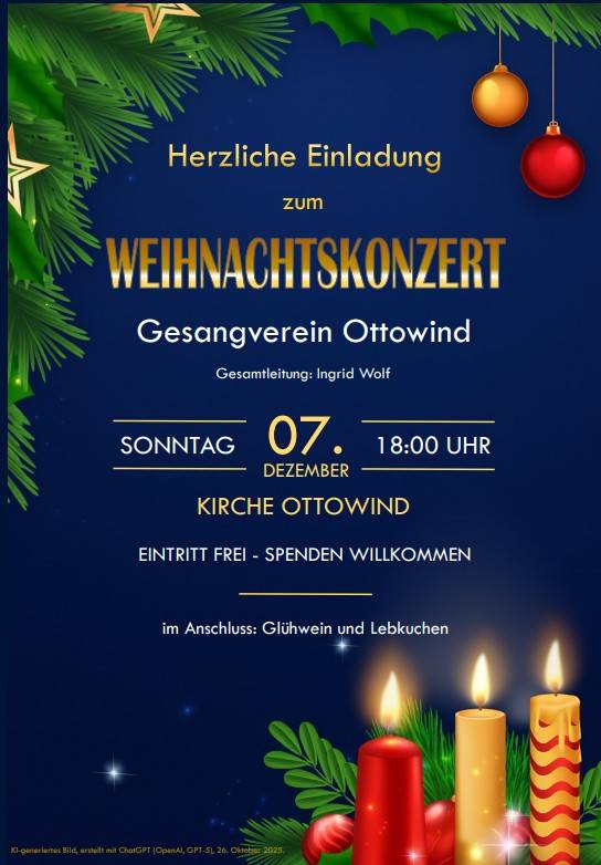 am Sonntag, den 07.12.2025 um 18:00 Uhr in der Kirche Ottowind