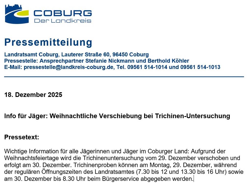 auf www.landkreis-coburg.de unter „Unser Bürgerservice/Pressemitteilungen“