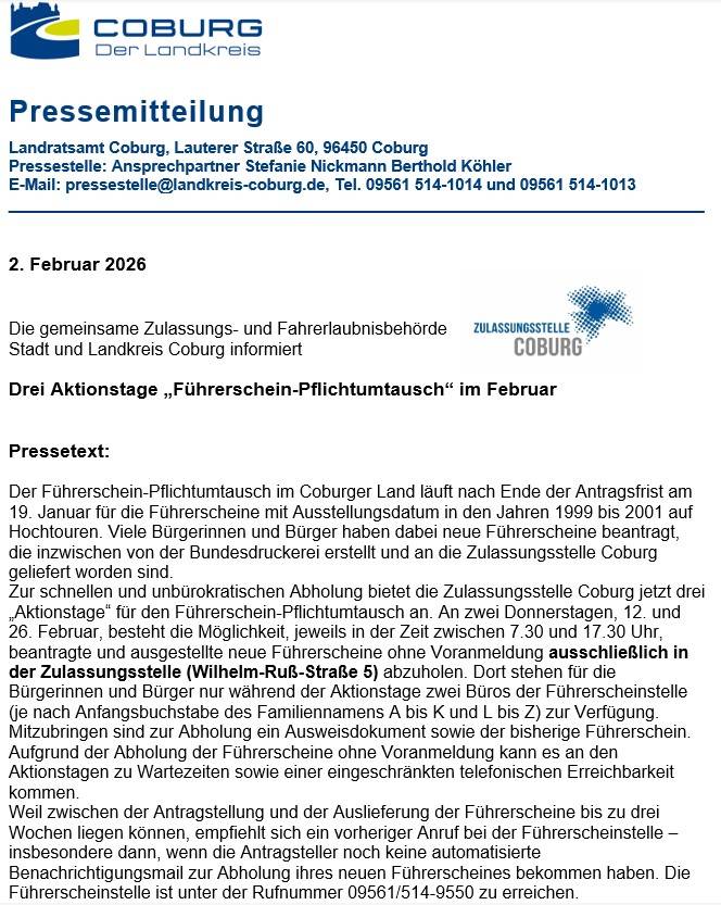 auf www.landkreis-coburg.de unter „Unser Bürgerservice/Pressemitteilungen“